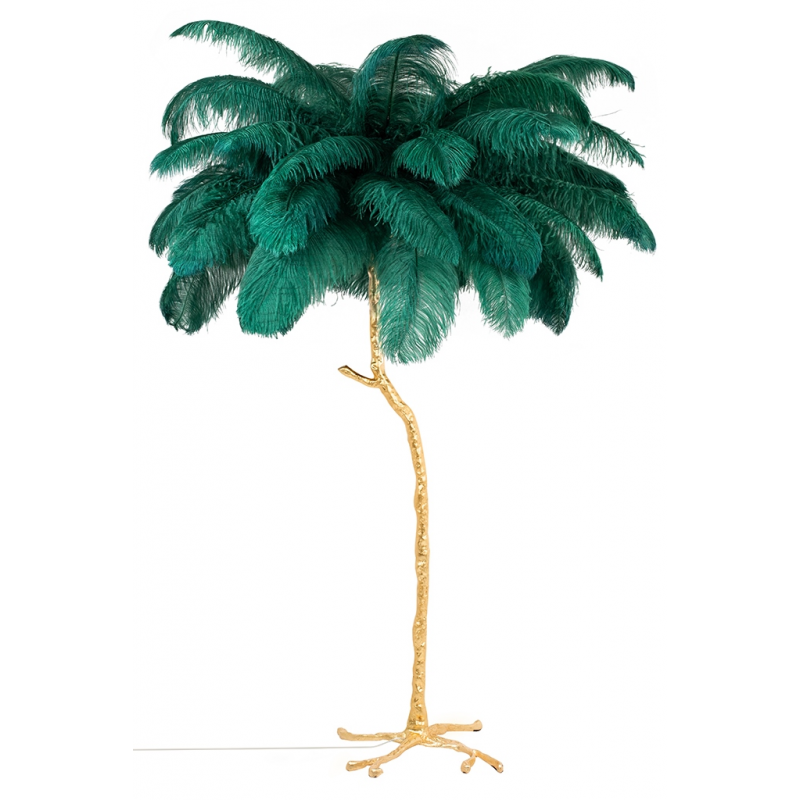 JL0019.GREEN - Lampa podłogowa TIFFANY 175 zielona mosiądz / naturalne pióra - King Home