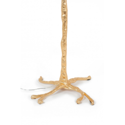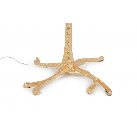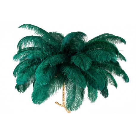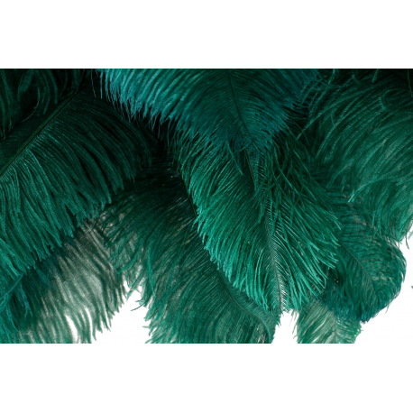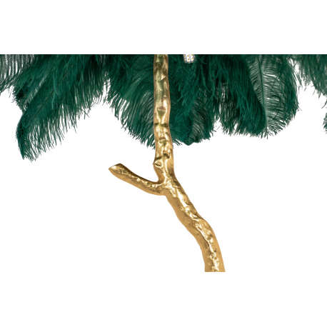 Lampa podłogowa TIFFANY.Oryginalny projekt zainspirowany naturą, kształtem przypominający drzewo z liśćmi zastąpionymi ptasimi piórami. Klosz lampy tworzy 45 sztuk gęsto ułożonych, naturalnych strusich piór o długości 55-60 cm. Całość kompozycji w połączeniu z miedzianą podstawą w kolorze złotym zachwyca niebanalnym wdziękiem. Motyw piór to akcent charakterystyczny dla stylu glamour czy art déco. Tiffany przykuje uwagę każdego miłośnika designu, a wnętrzu nada lekkości i elegancji.Światło: 5 x E27 max. 40 W (brak w zestawie)Oprawa: wys. 175 cm / szer. 120 cm / gł. 120 cmPodstawa: wys 125 cm / gr. 4 cmNóżki: dł. 22 cm / szer. 34 cm / gł. 34 cmElement mocujący - pióro: 5 cmElement mocujący - światło: 8 cmPrzewód: 197 cmWymiary opakowania: 143 cm / 43 cm / 26 cm.