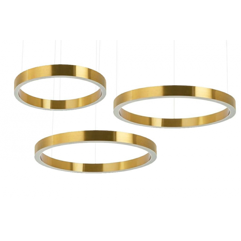 Lampa wisząca RING 60+80+80 złota. Połączenie nowoczesnych, eleganckich i bestselerowych opraw w dowolnych konfiguracjach na jednej podsufitce. Lampy Ring wykonano ze stali nierdzewnej w kolorze zło