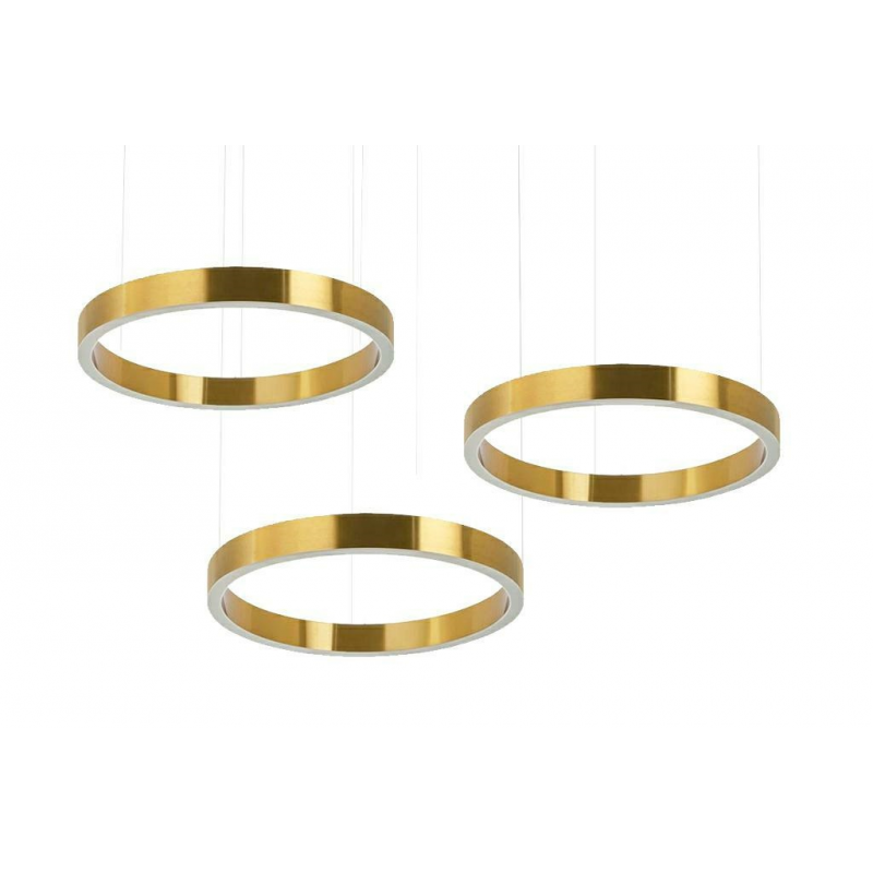 Lampa wisząca RING 40+40+40 złota. Połączenie nowoczesnych, eleganckich i bestselerowych opraw w dowolnych konfiguracjach na jednej podsufitce. Lampy Ring wykonano ze stali nierdzewnej w kolorze zło