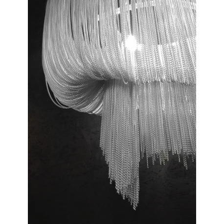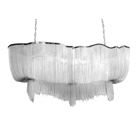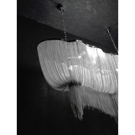 Atlanta Long to niezwykła lampa wisząca, inspirowana projektem Terzani Atlantis posiada nieregularne kształty, niczym fale oceanu. Została wykonana z aluminium i stalowych, drobnych łańcuchów, dzięk