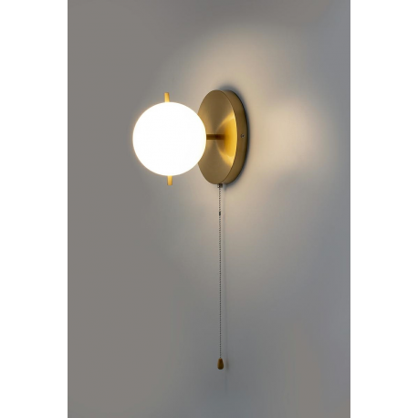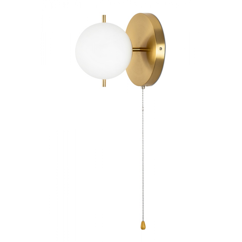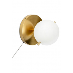 Lampa ścienna ORO złota. Nowoczesna oprawa wykonana z metalu w odcieniu mosiądzu oraz szklanego, mlecznego klosza. Oro jest niezwykle praktyczna poprzez zastosowanie dekoracyjnego włącznika, którym