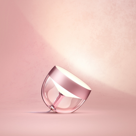 Limitowana edycja lampy Philips Hue Iris w kolorze różowym jeszcze bardziej podkreśla jej unikalny design. Jej przemyślane elementy - owinięty tkaniną przewód, metalowe wykończenie wewnętrzne, przezroczysta oprawa i różnorodność materiałów - zapewnią unikatowy efekt świetlny i dekoracyjny oraz dostęp do wszystkich funkcji inteligentnego oświetlenia.