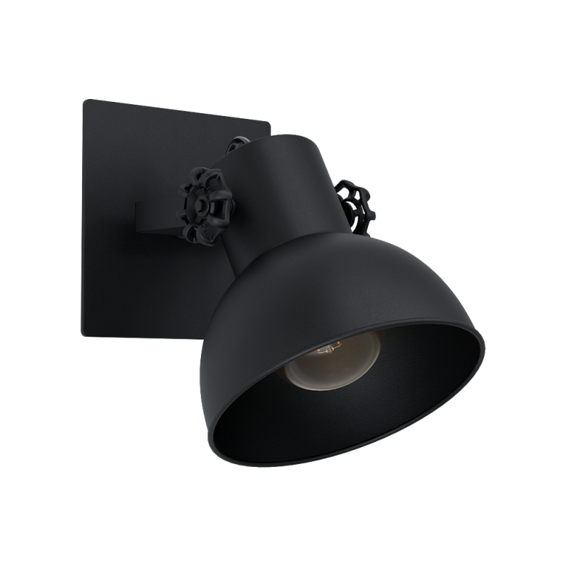 Kinkiet BARNSTAPLE 1 wykonany jest z czarnego metalu z ruchomą, czarną głowicą. Kinkiet w monochromatycznym designie idealnie pasuje do nowoczesnych mebli w stylu industrialnym