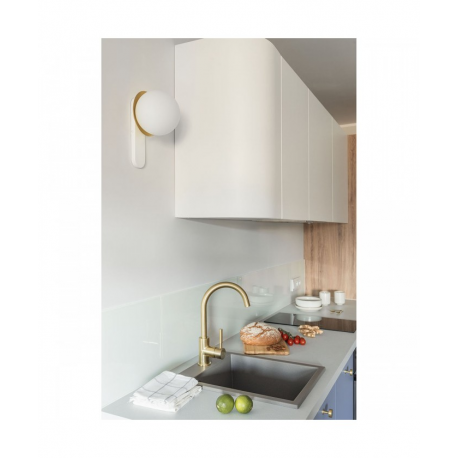 Największa szklana kula o średnicy 30 cm, zastosowana w lampie Kuul E, doskonale sprawdzi się jako lampa nad stołem w jadalni. Można wykorzystać ją pojedynczo lub w towarzystwie mniejszych sióstr o średnicy 15 cm (Kuul F). Z kolei kinkiet Kuul D/D1 znakomicie oświetli Twoje ulubione miejsca do czytania książek. Całość dopełni lampka stojąca. W ciągu dnia lampy przypominają śnieżnobiałe kule, a wraz z nadejściem wieczoru wypełniają pokój przyjemnym, naturalnym światłem.