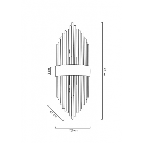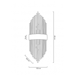 MOOSEE lampa ścienna ARMANDO złota.Nowoczesna oprawa ścienna wykonana z połączenia szklanych kloszy i stali w złotym kolorze.Snop światła przebija się przez transparentne elementy, a zatrzymuje na złotych rurkach, co tworzy niezwykły efekt wizualny.Wymienne źródło światła skierowane jest zarówno w górę, jak i w dół.Oprawa idealnie odnajdzie się we wnętrzach w stylu glamour.Światło: 2 x E14 max. 40 W (brak w zestawie)Oprawa: wys. 45 cm / szer. 17,5 cm / gł. 8,5 cmZłoty element klosza: wys. 5 cmMocowanie: wys. 5 cm / szer. 17,5 cmMontaż: instalacja ściennaWaga netto: 2,1 kgWymiary opakowania: 52 cm / 17 cm / 15 cm.
