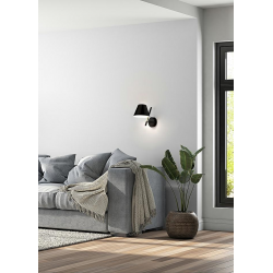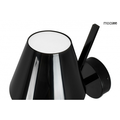 MOOSEE lampa ścienna MAGO czarna Klasyczna oprawa w nowoczesnym stylu wykonana z połączenia metalu i akrylu. Klosz w kształcie trapezu i pochyłe łączenie z montaturą tworzą niezwykłą, geometryczną k