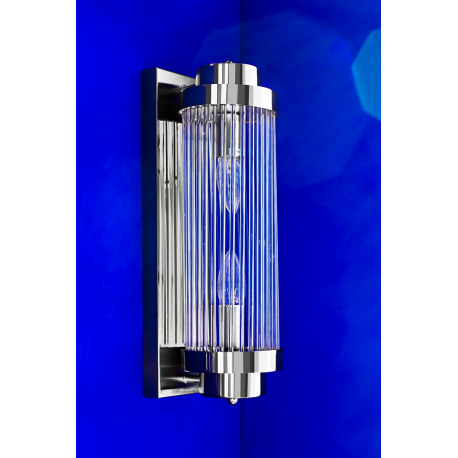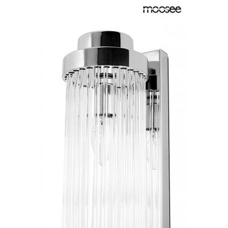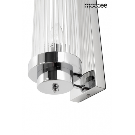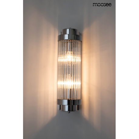 MOOSEE lampa ścienna COLUMN 40 srebrna. Elegancka osłona kloszy wykonana została ze stali chromowanej. Wewnątrz oprawy zamocowane są delikatne szklane klosze, które skutecznie rozpraszają światło. O