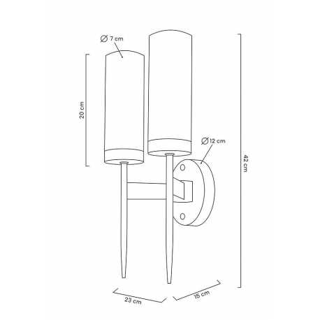 Lampa ścienna TORCH TWIN złota.Elegancki kinkiet przypominający nowoczesne pochodnie w stylu glamour. Oprawa została wykonana ze stali w kolorze złotym, a klosze z efektownego kryształu,które w wyjątkowy sposób rozpraszają światło, imitując płomień. Światło: 2 x E14 max. 40 W (brak w zestawie)Oprawa: wys. 42 cm / szer. 23 cm / gł. 15 cmKlosz: wys. 20 cm / śr. 7 cmMocowanie: śr. 12 cm / gł. 3 cmMontaż: instalacja ściennaWaga netto: 1 kgWymiary opakowania: 35 cm / 31 cm / 26 cm.*W kloszach mogą wystąpić pęcherzyki powietrza, które są naturalnym efektem powstałym podczas ręcznej obróbki szkła.