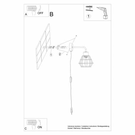 Źródło światła: E27, 1x max 15W LED, 50Hz, ~230V, IP20, klasa ochronności II