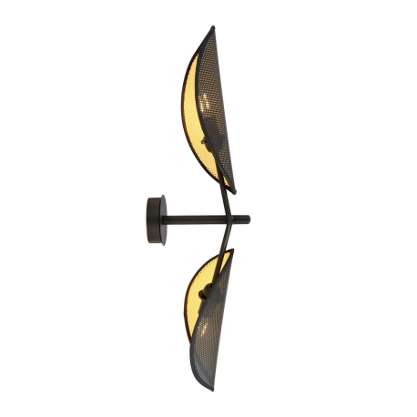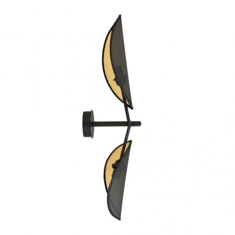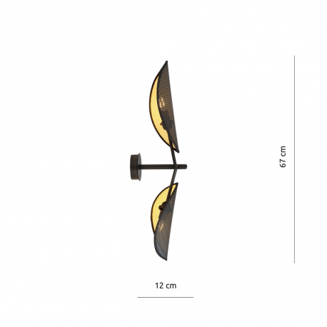 Kinkiet VENE zachwyca lekkością i subtelnością. Idealnie wpasuje się w gusta klientów, ceniących sobie wyjątkowe materiały i oryginalny design w stylu etno. Wyjątkowe abażury w kształcie liści dodają lampie niezwykłej delikatności. Będzie doskonałym elementem dekoracyjnym, tworząc w pomieszczeniu przytulną atmosferę. Najlepiej prezentuje się w salonie lub sypialni i z pewnością przykuje uwagę wszystkich gości. Wykonany z najwyższej jakości materiałów. Produkt w 100% polski. Abażury czarno-złote, biało-złote lub rattanowe.
