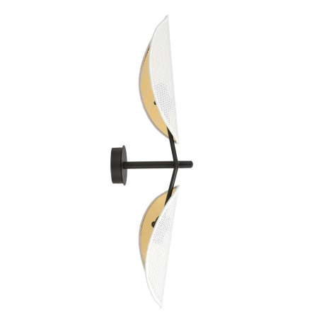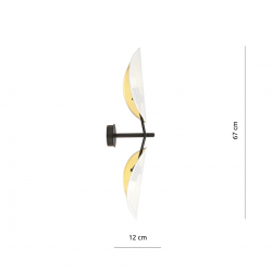 Kinkiet VENE zachwyca lekkością i subtelnością. Idealnie wpasuje się w gusta klientów, ceniących sobie wyjątkowe materiały i oryginalny design w stylu etno. Wyjątkowe abażury w kształcie liści dodają lampie niezwykłej delikatności. Będzie doskonałym elementem dekoracyjnym, tworząc w pomieszczeniu przytulną atmosferę. Najlepiej prezentuje się w salonie lub sypialni i z pewnością przykuje uwagę wszystkich gości. Wykonany z najwyższej jakości materiałów. Produkt w 100% polski. Abażury czarno-złote, biało-złote lub rattanowe.