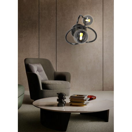 Kinkiet jest dostępny w pięknym kolorze czarnego chromu z dymionymi kloszami, który doda uroku i blasku Twoim wnętrzom. Bez względu na to, czy wybierasz się na przyjęcie, czy relaksujesz się po ciężkim dniu, kolor kinkietu z pewnością stworzy przyjemną atmosferę.
