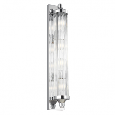 Kolekcja lamp łazienkowych Paulson posiada piękną, inspirowaną stylem retro sylwetkę, która została wzbogacona o nowoczesne akcenty. Elementy wykończone w kolorze polerowanego chromu podtrzymują szklane klosze wykonane z rzędów pojedynczych szklanych prętów, które delikatnie rozpraszają światło.