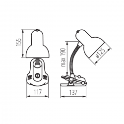 Kanlux SUZI to prosta lampka biurkowa. Dostępna jest kilku jednolitych wersjach kolorystycznych. Kanlux SUZI posiada regulowane ramię i klips dzięki któremu możemy umocować lampkę na krawędzi biurka lub na półce.