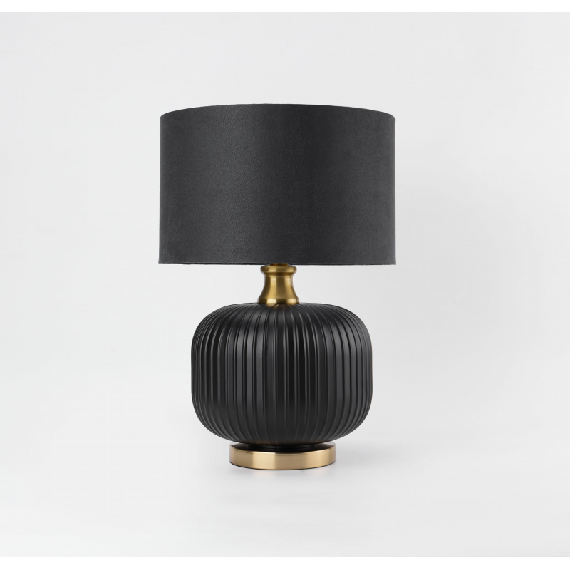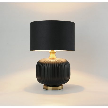 Karbowane matowe szkło ze złotymi wykończeniami oraz aksamitnym abażurem