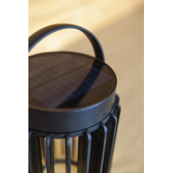Solarna lampa stołowa KOZY tworzy delikatny i niepowtarzalny klimat. Doskonała do przekształcenia stołu ogrodowego lub tarasu w przytulne, rodzinne miejsce i to przez całą noc. Istnieje możliwość ładowania za pomocą USB. Kolor czarny