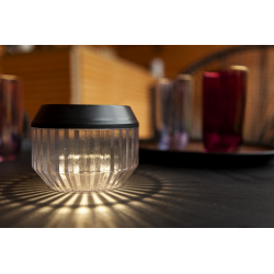 Solarne lampki stołowe DIVA dzięki fasetowanemu, przezroczystemu dyfuzorowi tworzą delikatną i niepowtarzalną atmosferę. Doskonałe na taras lub do orodu oświetlą stół przez całą noc. Kolor czarny.