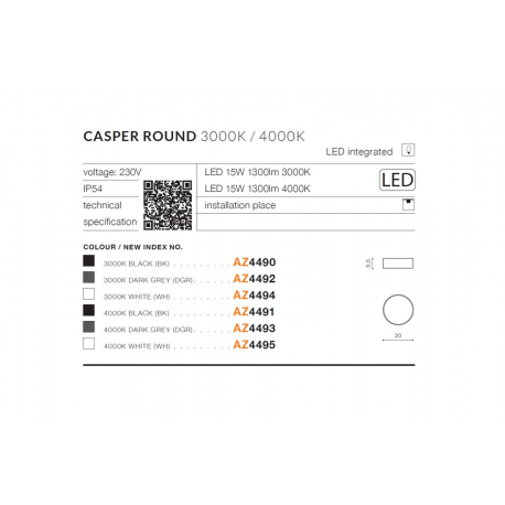CASPER ROUND LED IP54 KINKIET OGRODOWY 4000K AZZARDO AZ4491