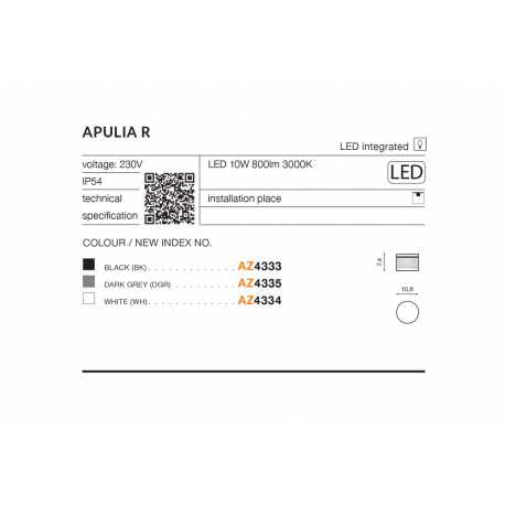 APULIA R IP54 LAMPA NATYNKOWA ZEWNĘTRZNA 3000k AZZARDO AZ4333