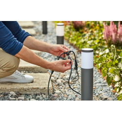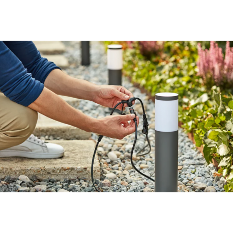 Każda oprawa GardenLink jest wyposażona w to samo złącze Twist & Lock, co ułatwia instalację i podłączanie. Możesz zmieniać położenie opraw i akcesoriów, gdy konieczna jest zmiana oświetlenia zewnętrznego, i oświetlić każdy zakątek ogrodu.