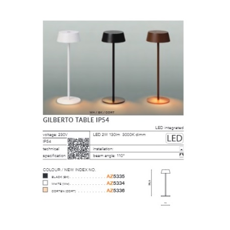 AZ5334 GILBERTO TABLE IP54 WH LAMPA ZEWNĘTRZNA STOŁOWA AZZARDO