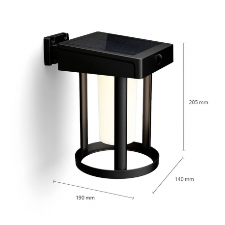 Ta lampa jest w całości zasilana energią słoneczną. Nie jest potrzebne żadne okablowanie, dzięki czemu takie lampy można łatwo ustawić w dowolnym miejscu ogrodu lub w innym miejscu na zewnątrz oraz w razie potrzeby przenieść.