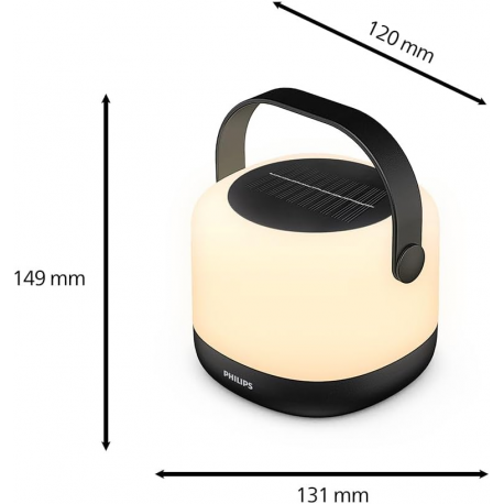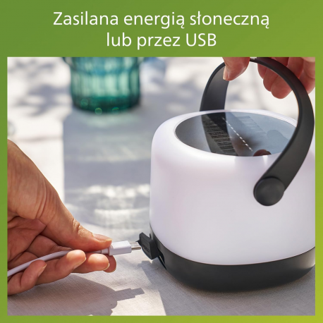 Rozświetl otoczenie swojego domu Ta przenośna lampa solarna Philips Alula ma tryby ustawień światła 3 w 1. Wystarczy puknąć lub stuknąć, aby korzystać z dwóch poziomów jasności lub trybu imprezy RGB