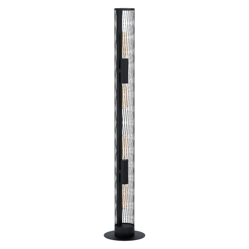 Lampa podłgowa REDCLIFFE z czarnym, drucianym, ażurowym kloszem.