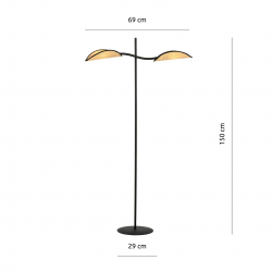 Lampa podłogowa LOTUS zachwyca lekkością i subtelnością. Idealnie wpasuje się w gusta klientów, ceniących sobie wyjątkowe materiały i oryginalny design w stylu etno. Wyjątkowe abażury w kształcie liści dodają lampie niezwykłej delikatności. Będzie doskonałym elementem dekoracyjnym, tworząc w pomieszczeniu przytulną atmosferę. Najlepiej prezentuje się w salonie lub sypialni i z pewnością przykuje uwagę wszystkich gości. Wykonany z najwyższej jakości materiałów. Produkt w 100% polski. Abażury czarno-złote, biało-złote lub rattanowe.