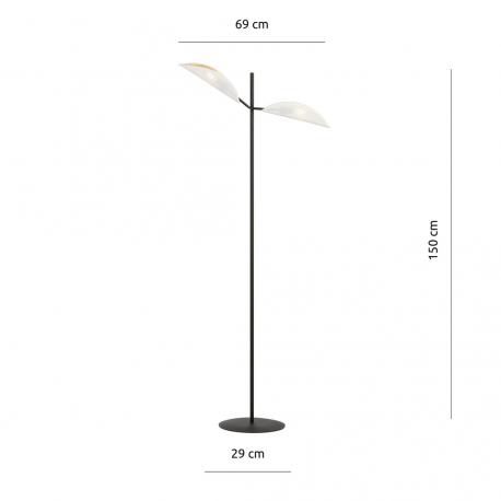 Lampa podłogowa VENE zachwyca lekkością i subtelnością. Idealnie wpasuje się w gusta klientów, ceniących sobie wyjątkowe materiały i oryginalny design w stylu etno. Wyjątkowe abażury w kształcie liści dodają lampie niezwykłej delikatności. Będzie doskonałym elementem dekoracyjnym, tworząc w pomieszczeniu przytulną atmosferę. Najlepiej prezentuje się w salonie lub sypialni i z pewnością przykuje uwagę wszystkich gości. Wykonany z najwyższej jakości materiałów. Produkt w 100% polski. Abażury czarno-złote, biało-złote lub rattanowe