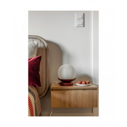 Największa szklana kula o średnicy 30 cm, zastosowana w lampie Kuul E, doskonale sprawdzi się jako lampa nad stołem w jadalni. Można wykorzystać ją pojedynczo lub w towarzystwie mniejszych sióstr o średnicy 15 cm (Kuul F). Z kolei kinkiet Kuul D/D1 znakomicie oświetli Twoje ulubione miejsca do czytania książek. Całość dopełni lampka stojąca. W ciągu dnia lampy przypominają śnieżnobiałe kule, a wraz z nadejściem wieczoru wypełniają pokój przyjemnym, naturalnym światłem.