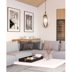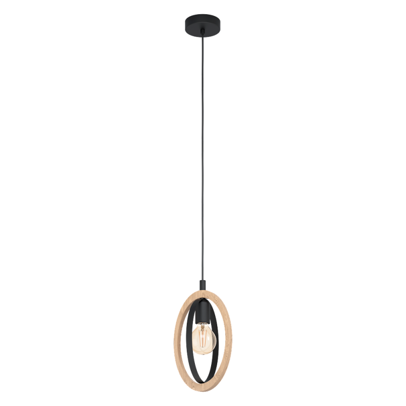 Lampa wiszaca BASILDON wykonana z naturalnego drewna i czarnej stali w kształcie ringu