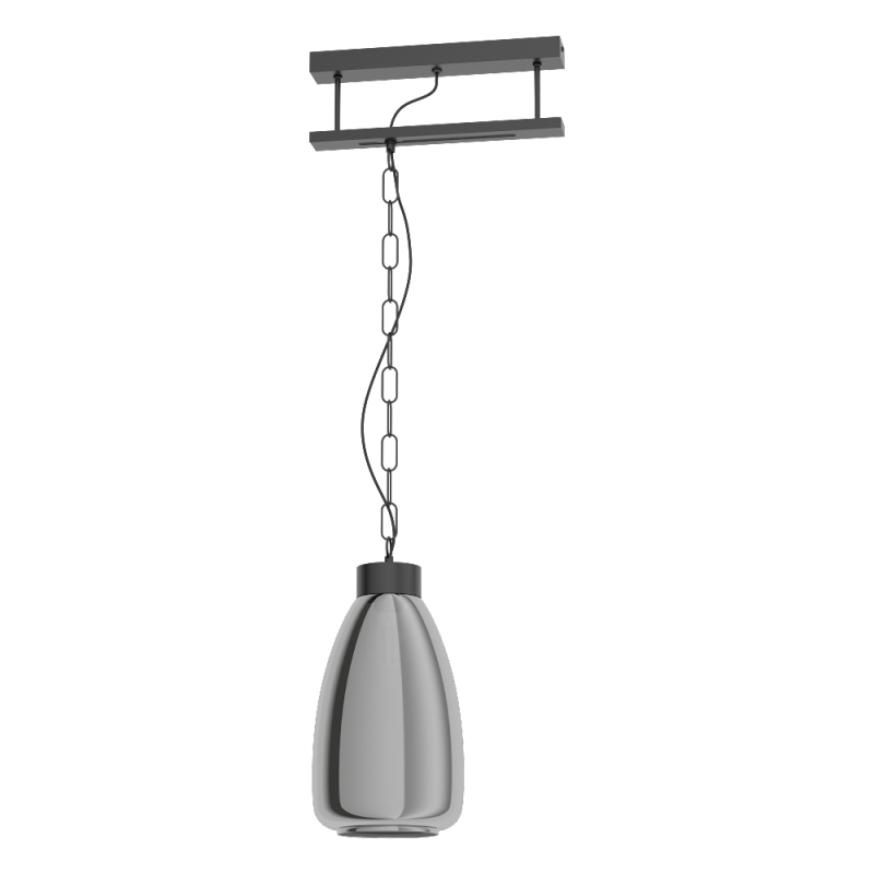 Lampa wisząca BRICKFIELD ma konstrukcję w kształcie łzy wykonaną z dymnego, czarnego szkła.