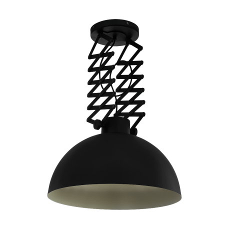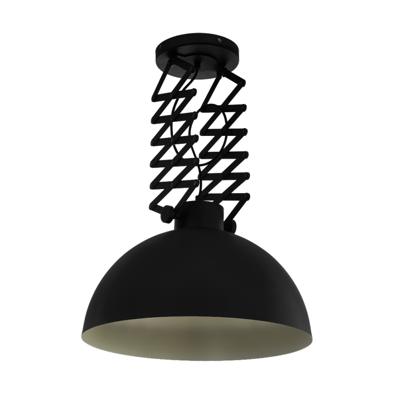 Lampa sufitowa DONINGTON wykonana jest ze stali, posiada czarny okrągły klosz z kremowym wnętrzem. Wysuwane ramiona nożycowe umożliwiają indywidualną regulację wysokości