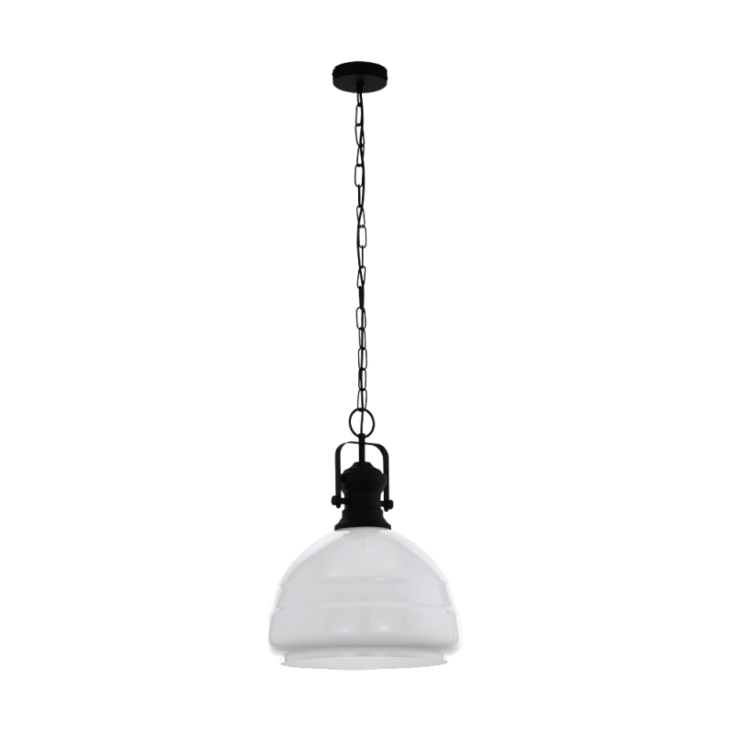 Lampa wisząca COMBWICH 1 posiada biały, stylowy szklany klosz zwieszony na czarnym łańcuchu. Zapewni dobre oświetlenie w kuchni, jadalni lub salonie.