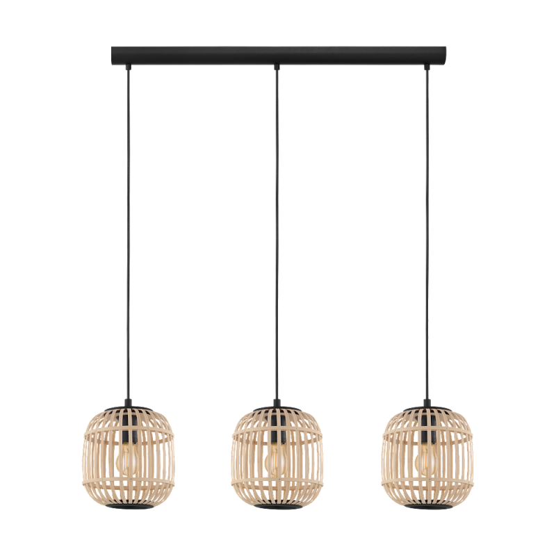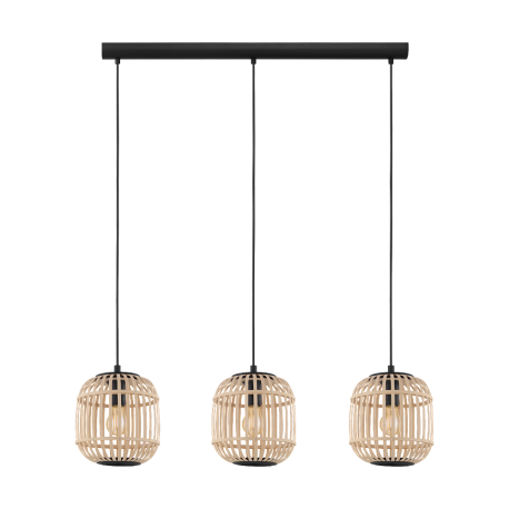 Lampa wisząca BORDESLEY wykonana jest ze stali oraz naturalnego drewna. Trzy ażurowe abażury nadadzą wnętrzu szczególnego uroku