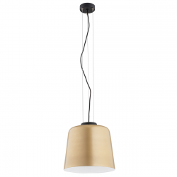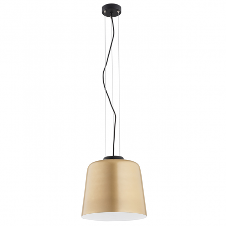 Prosta, bardzo klasyczna lampa wisząca z szklanym kloszem lakierowanym na złoty kolor. Elegancka lampa idealna do salonów
