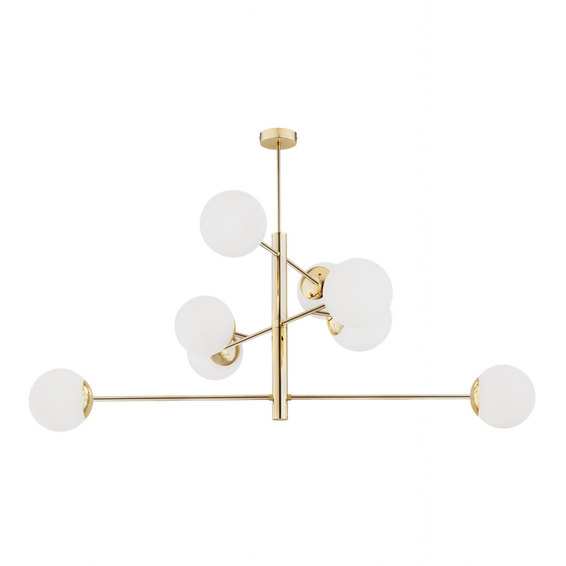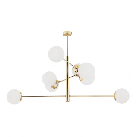 Niesamowita, ekstrawagancka, duża lampa wisząca CAMERON. To nowoczesny żyrandol w którym miesza się feria kolorów – biel, złoto.