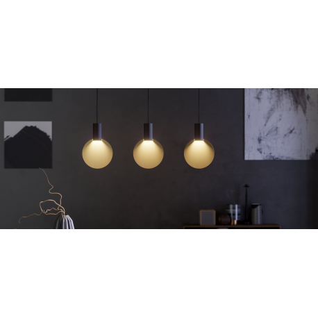 Lampa wisząca LED SARONA składa się z trzech okrągłych metalowych krążków w kolorze złotym, z których każdy został połączony z cylindrycznym metalowym mocowaniem w kolorze czarnym. Oprawki żarówek znajdują się w nasadkach i zapewniają efekt pośredniego światła po obu stronach tafli w kolorze złotym, a także bezpośrednie światło w dół. Wydłużone zawieszenie z czarnego metalu i wysokiej jakości czarne przewody tekstylne dopełniają modnego wyglądu lampy. Dostarczone żarówki LED zapewniają przyjemne, ciepłe, białe światło. Lampa wisząca z ekscytującą mieszanką kształtów płynnie komponuje się z nowoczesnymi stylami wyposażenia i zapewnia stylowe oświetlenie w salonie lub jadalni, na przykład nad wydłużonym stołem jadalnym. Lampa nadaje się do każdego źródła światła z trzonkiem GU10.