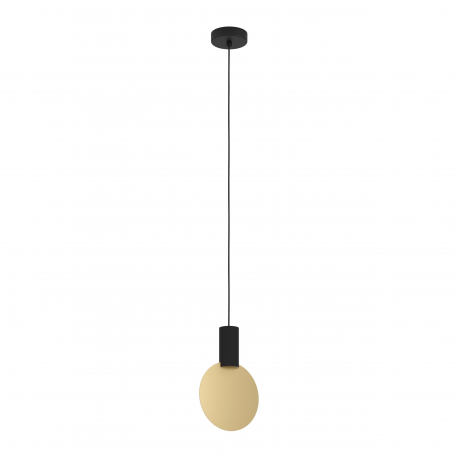 Lampa wisząca LED SARONA składa się z okrągłej metalowej tarczy w kolorze złota, która została połączona z cylindryczną metalową nasadką w kolorze czarnym. Oprawa żarówki znajduje się w nasadce i zapewnia efekt pośredniego światła po obu stronach złotej szyby oraz bezpośrednie światło w dół. Czarne metalowe zawieszenie i wysokiej jakości, czarny przewód tekstylny dopełniają modnego wyglądu lampy. Dostarczone oświetlenie LED emituje przyjemne, ciepłe, białe światło. Lampa wisząca z ekscytującą mieszanką kształtów płynnie komponuje się z nowoczesnymi stylami wyposażenia i zapewnia stylowe oświetlenie w salonie lub jadalni. Lampa nadaje się do każdego źródła światła z trzonkiem GU10.