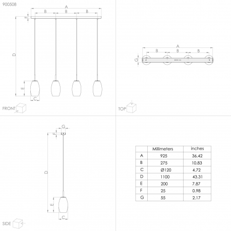 BATISTA LAMPA WISZĄCA 900508 EGLO