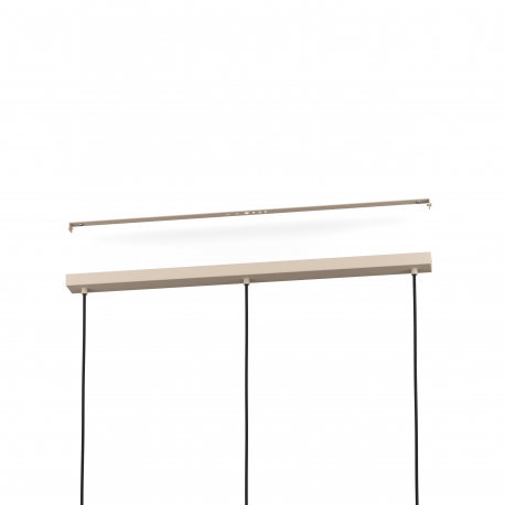 Lampa wisząca CAMBAITO jest wykonana z długiego, metalowego baldachimu w kolorze piasku, z którego trzy metalowe klosze tego samego koloru zwisają z czarnymi kablami tekstylnymi. Dzięki różnym kształtom trzy parasole zapewniają atrakcyjny, a jednocześnie harmonijny wygląd. Lampa wisząca o monochromatycznym designie płynnie komponuje się z nowoczesnymi stylami wyposażenia i oferuje stylowe oświetlenie w salonie lub jadalni, na przykład nad wydłużonym stołem jadalnym. Żarówki nie wchodzą w zakres dostawy. Lampa nadaje się do każdej lampy z trzonkiem E27.