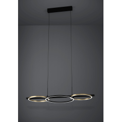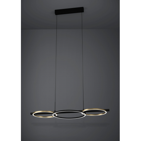 Lampa wisząca LED LANACERA składa się z okrągłych, metalowych profili w kolorze czarnym i złotym. Profile zostały połączone z czarną metalową podstawą. Diody LED umieszczone pod białymi, plastikowymi osłonami emitują przyjemne, ciepłe, białe światło. Dzięki stylowemu połączeniu czerni i złota lampa doskonale wpasowuje się w nowoczesne trendy mieszkaniowe i przyciąga wzrok w każdym pomieszczeniu - czy to w salonie, sypialni, przedpokoju czy jadalni.