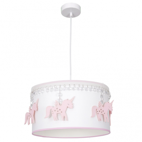 Seria UNI od polskiej marki MiLAGRO to spełnienie marzeń prawie każdej dziewczynki. Połączenie subtelnego, delikatnego różu z bielą oraz motywu jednorożca sprawia, że lampa ta to obowiązkowy dodatek do pokoju miłośniczki tej baśniowej postaci. W skład kolekcji wchodzi: kinkiet, lampa wisząca, sufitowa z dwoma i trzema punktami świetlnymi. Dzięki temu za pomocą tej serii można stworzyć spójny wystrój wnętrza.