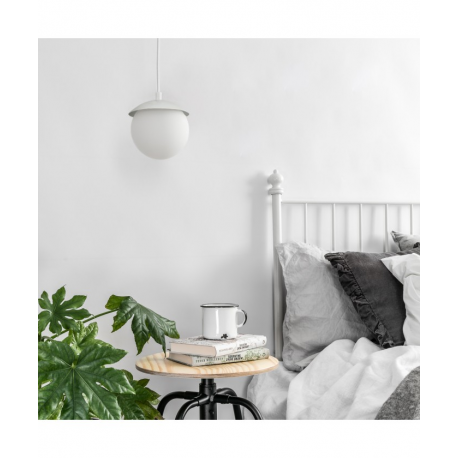 Największa szklana kula o średnicy 30 cm, zastosowana w lampie Kuul E, doskonale sprawdzi się jako lampa nad stołem w jadalni. Można wykorzystać ją pojedynczo lub w towarzystwie mniejszych sióstr o średnicy 15 cm (Kuul F). Z kolei kinkiet Kuul D/D1 znakomicie oświetli Twoje ulubione miejsca do czytania książek. Całość dopełni lampka stojąca. W ciągu dnia lampy przypominają śnieżnobiałe kule, a wraz z nadejściem wieczoru wypełniają pokój przyjemnym, naturalnym światłem.