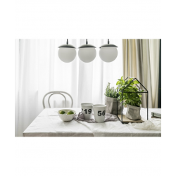 Największa szklana kula o średnicy 30 cm, zastosowana w lampie Kuul E, doskonale sprawdzi się jako lampa nad stołem w jadalni. Można wykorzystać ją pojedynczo lub w towarzystwie mniejszych sióstr o średnicy 15 cm (Kuul F). Z kolei kinkiet Kuul D/D1 znakomicie oświetli Twoje ulubione miejsca do czytania książek. Całość dopełni lampka stojąca. W ciągu dnia lampy przypominają śnieżnobiałe kule, a wraz z nadejściem wieczoru wypełniają pokój przyjemnym, naturalnym światłem.