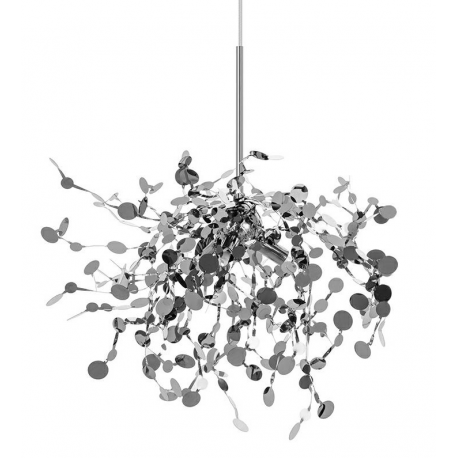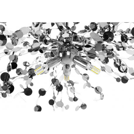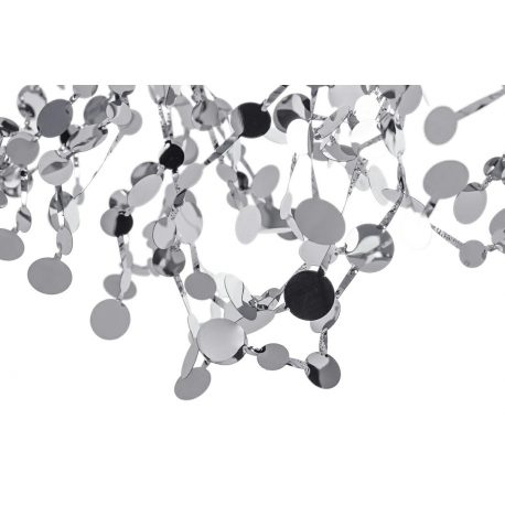 Lampa wisząca Monete chromowana. Wyjątkowo ciekawa lampa która przykuwa uwagę i pobudza kreatywność. Konstrukcja lampy wykonana została z chromowanego metalu. Klosz przypominający swoim wyglądem, ga