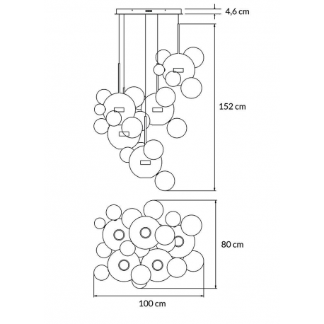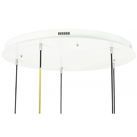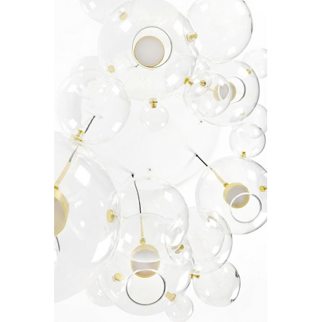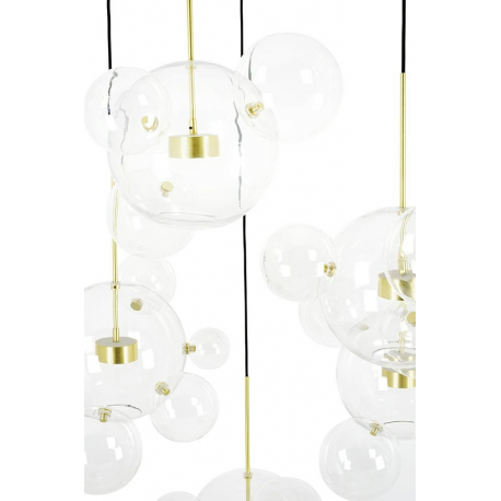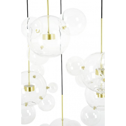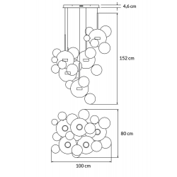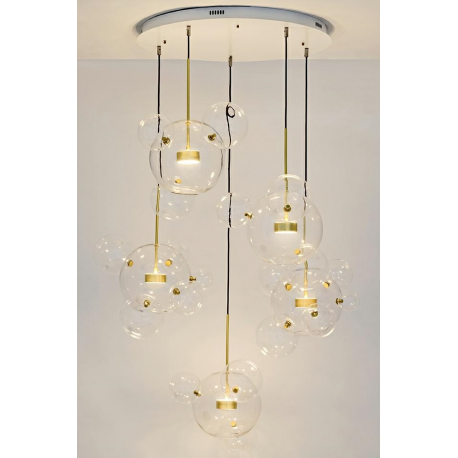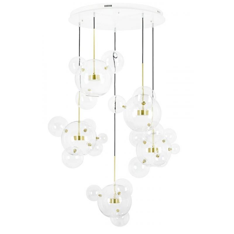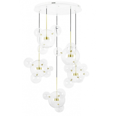 Do głównych kloszy doczepione są pozostałe kule za pomocą mocowań w kolorze złotym.