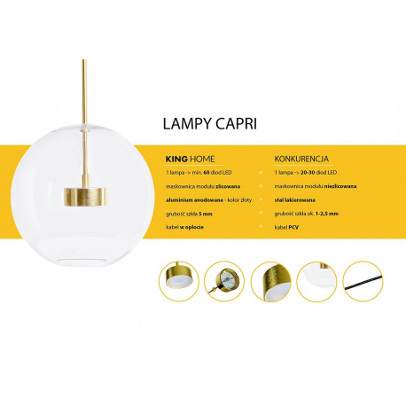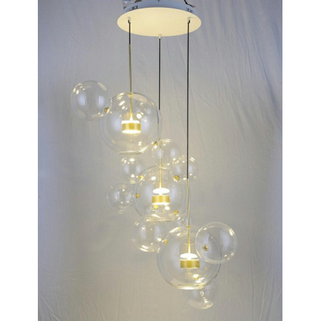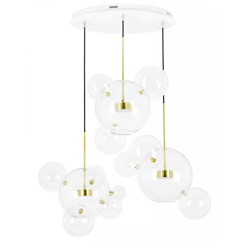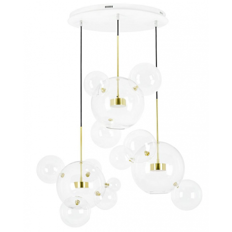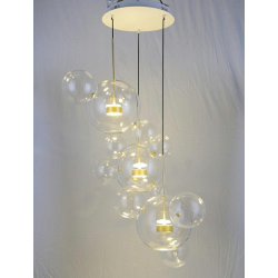 Do głównych kloszy doczepione są pozostałe kule za pomocą mocowań w kolorze złotym.